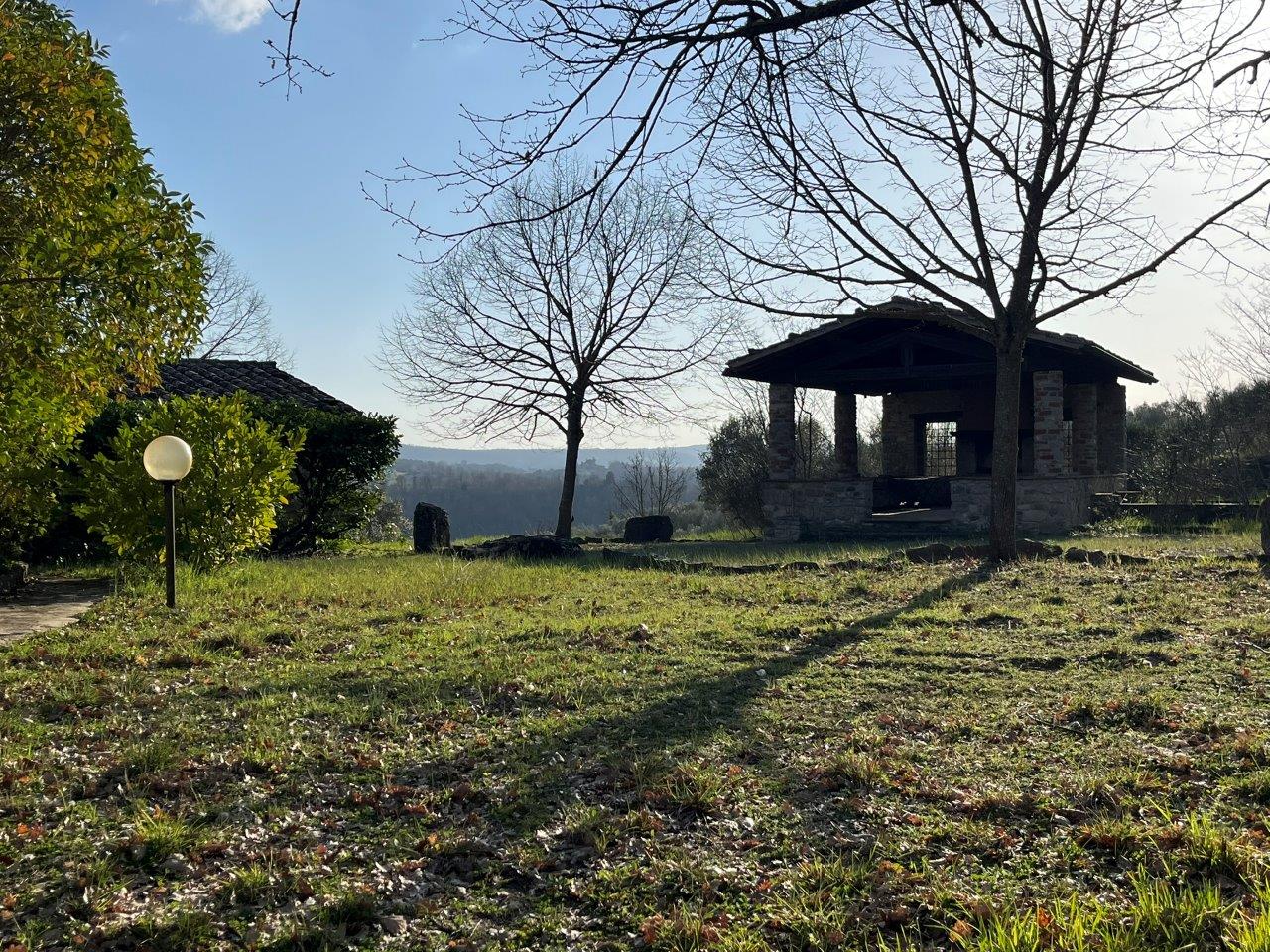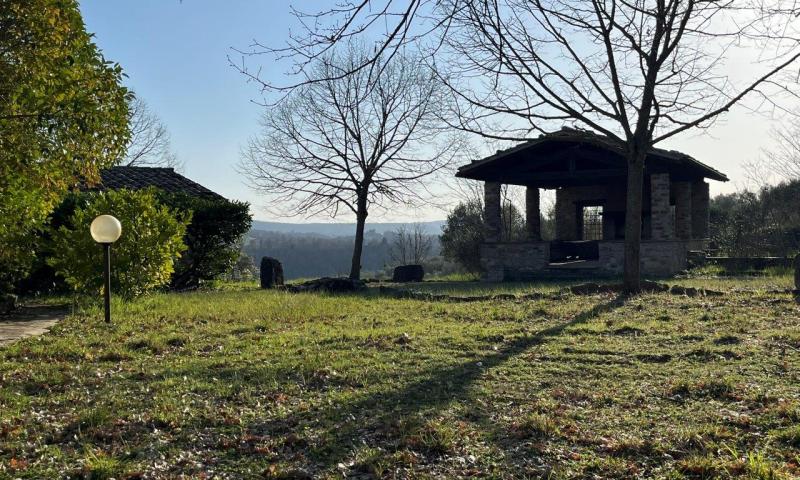 One of the outbuildings is another living unit with kitchen, bedroom and bathroom with separate storage area; whereas the other outbuilding is an open area with a fireplace for eating outside under a roof. There is also a large garden surrounding the house for a total of 3 ha .