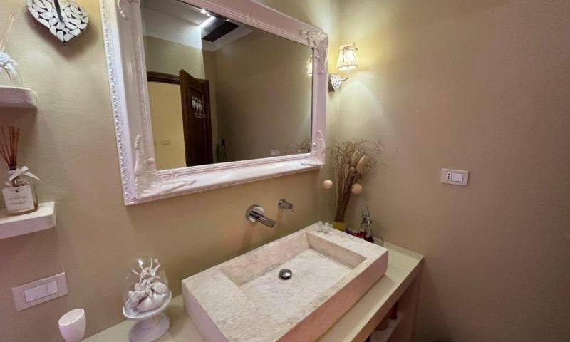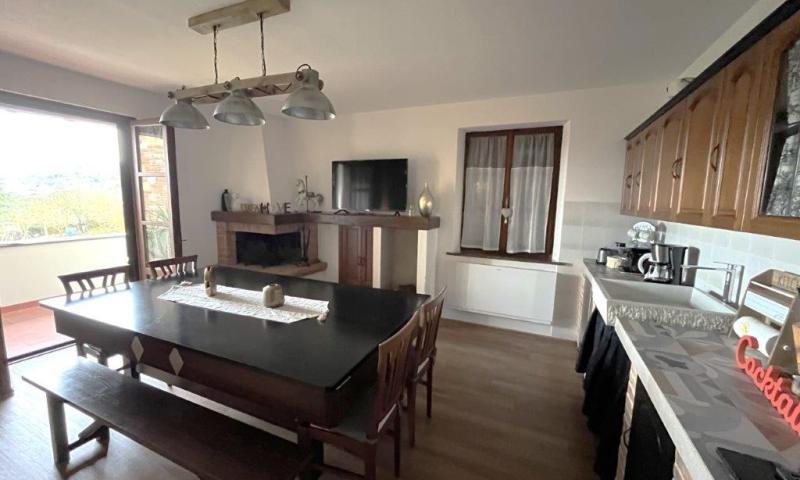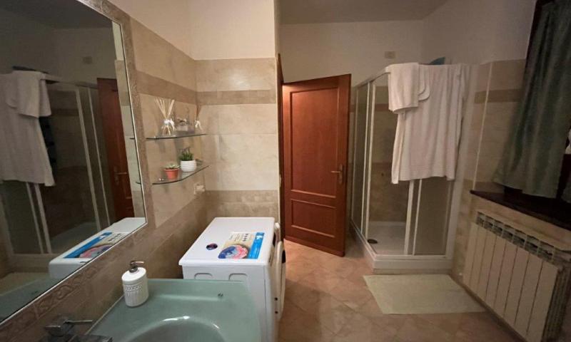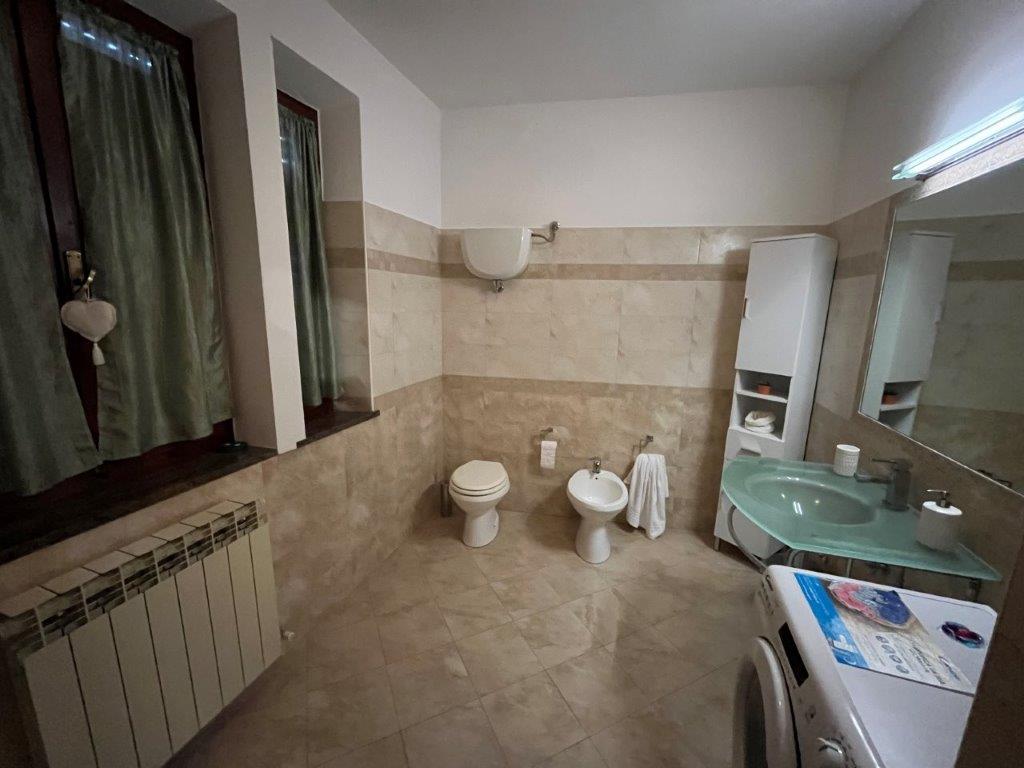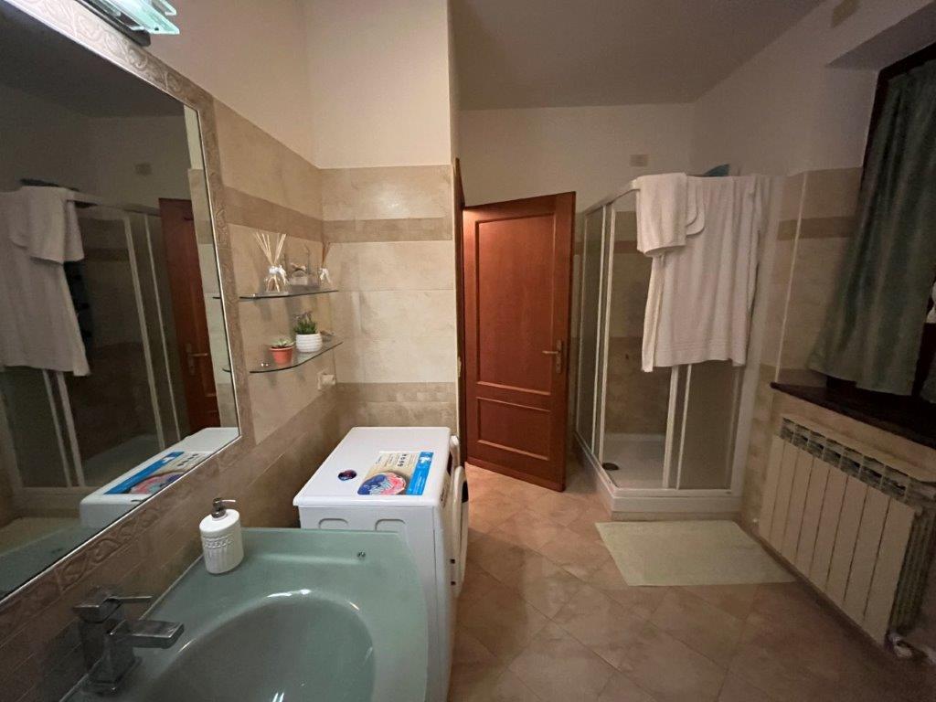 • Renovated 90 square meters flat on the first floor, accessed via an external staircase with loggia, made up of: an entrance hall, living room, kitchen with French windows opening onto a terrace, two bedrooms, each with a private terrace, and a bathroom.