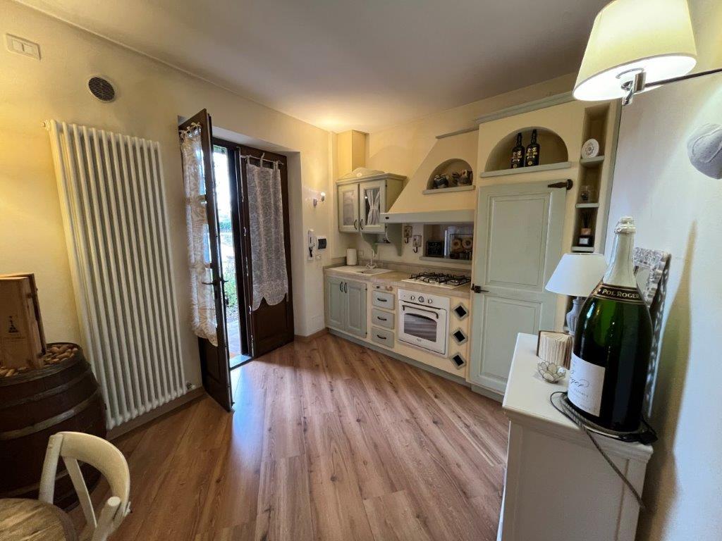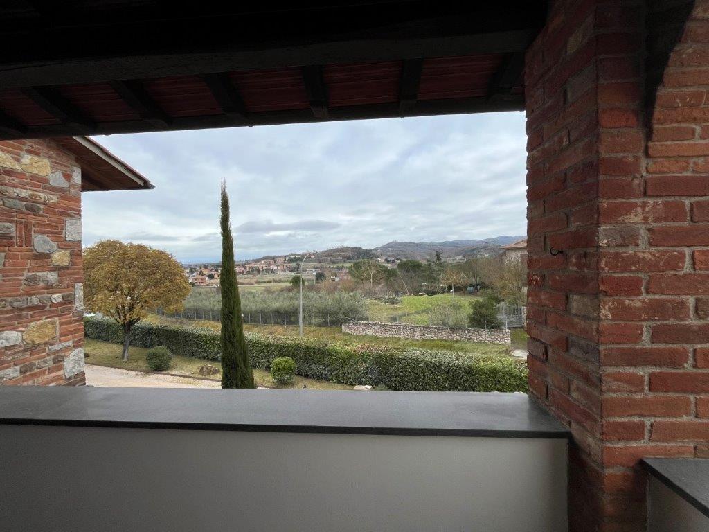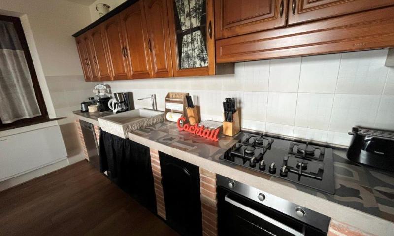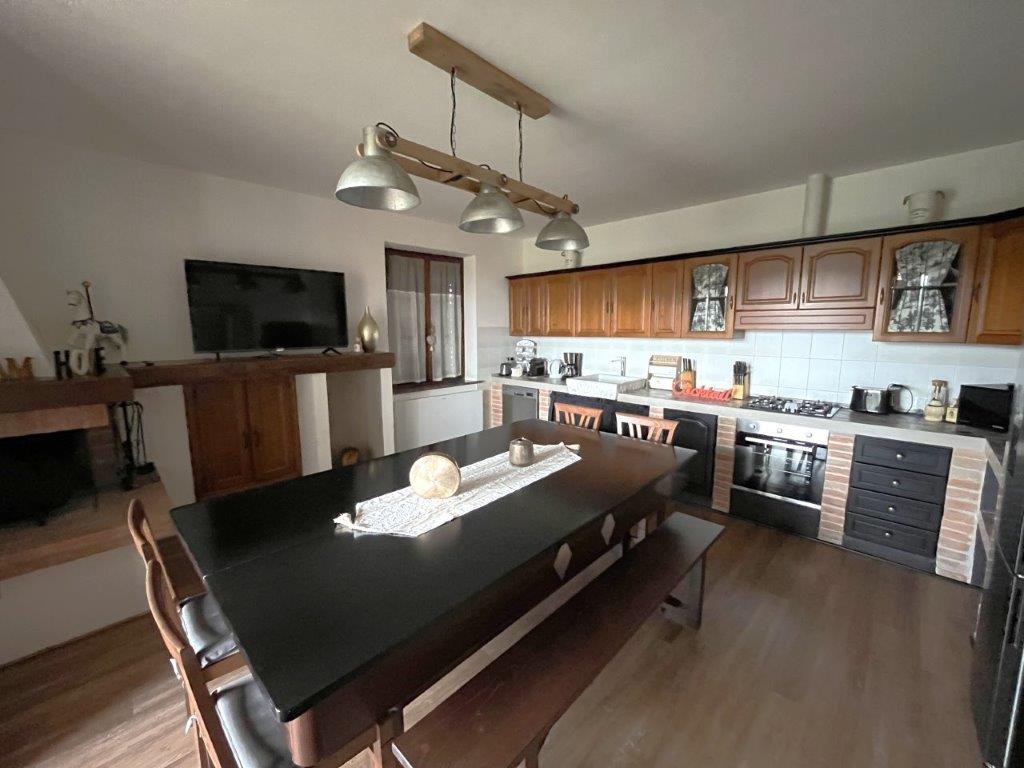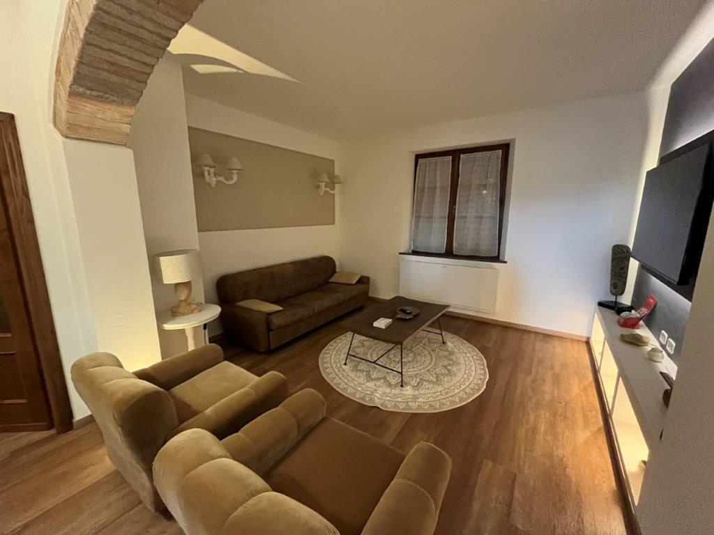 • Renovated 90 square meters flat on the first floor, accessed via an external staircase with loggia, made up of: an entrance hall, living room, kitchen with French windows opening onto a terrace, two bedrooms, each with a private terrace, and a bathroom.