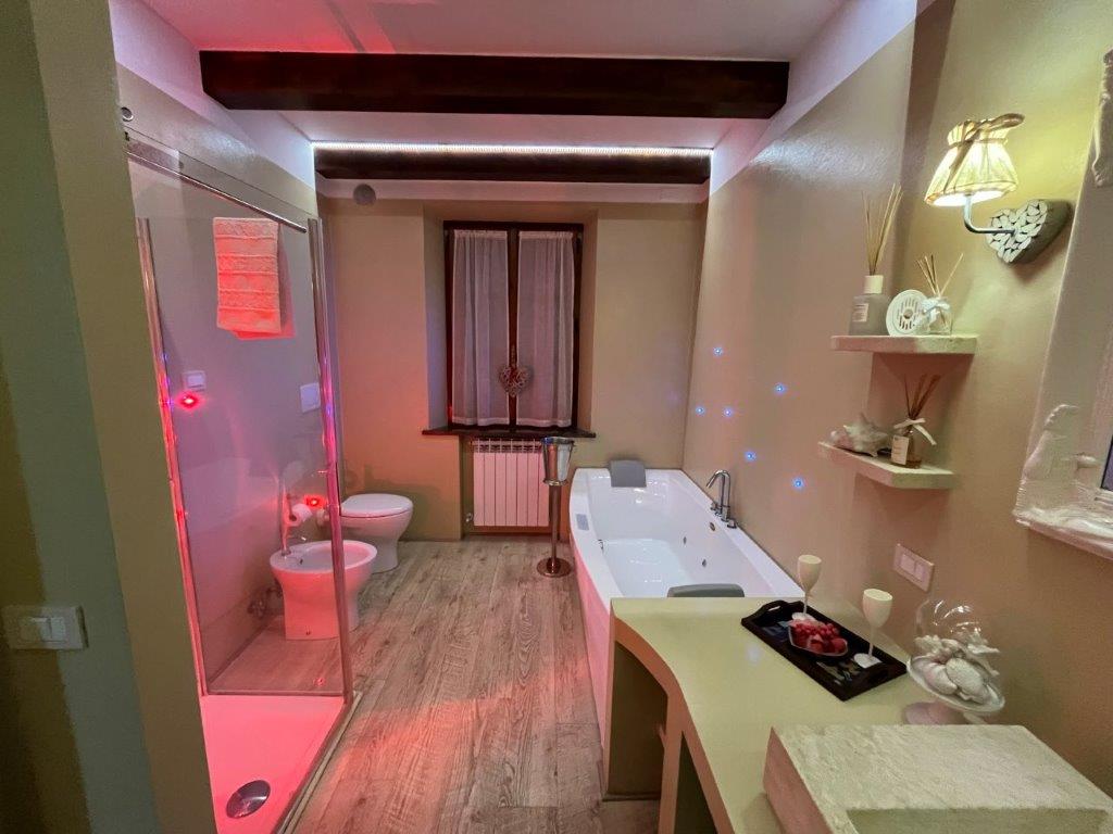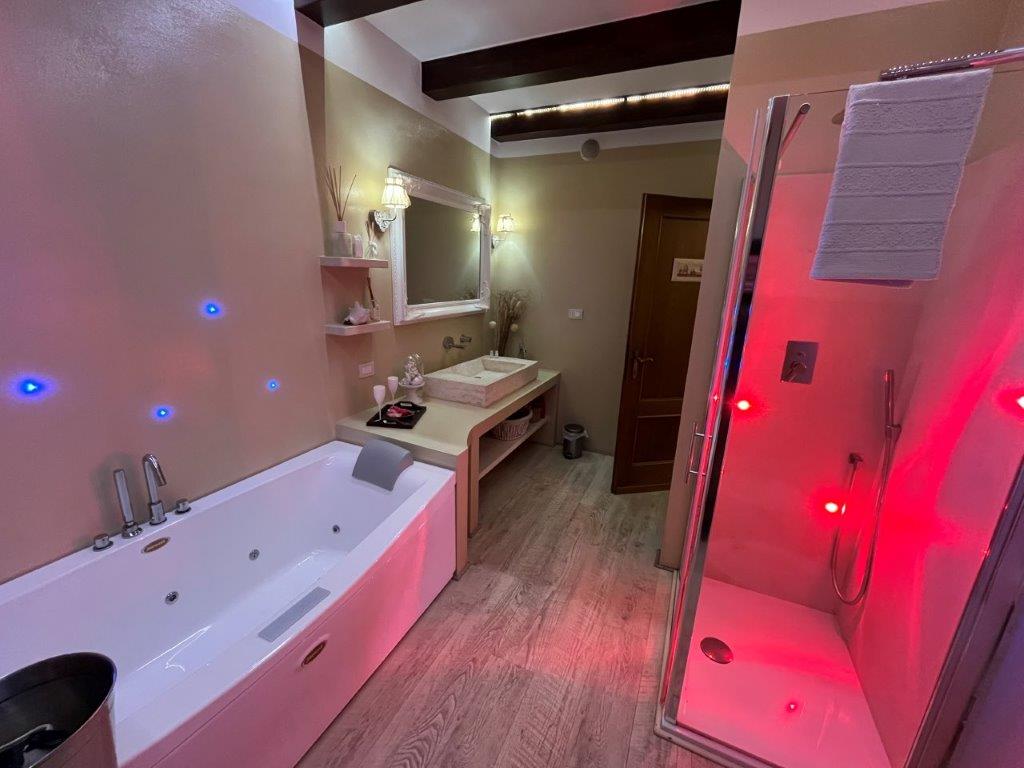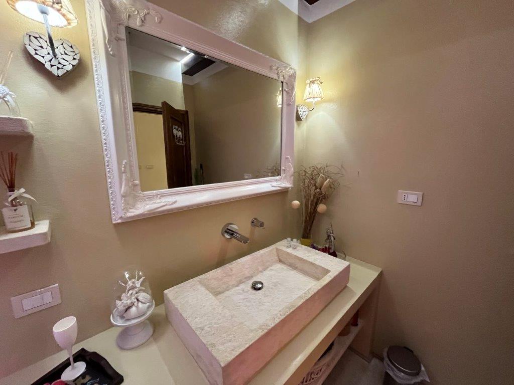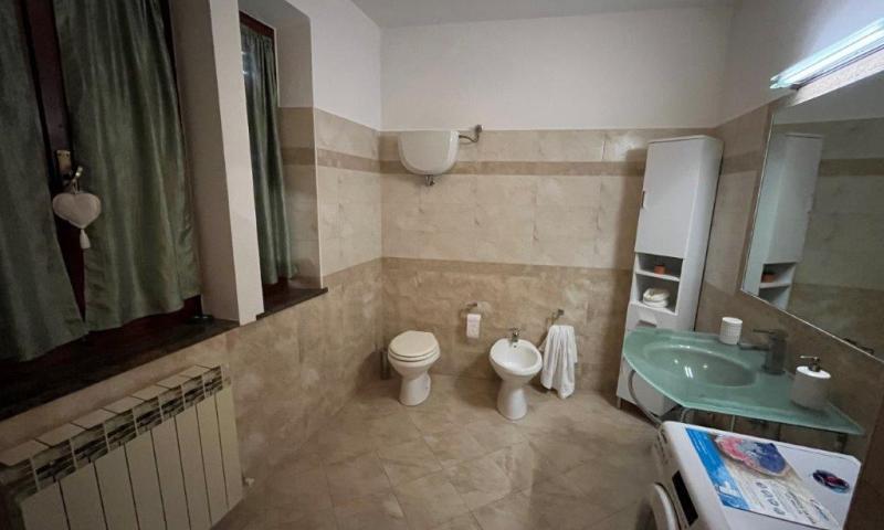 • Main flat of 145 square meters on the ground floor, consisting of: an entrance hall with porch, a large living area of 40 square metres with two external accesses to the garden (with two additional porches), a kitchen, two double bedrooms, one of which has an external terrace porch, a bathroom and a bathroom with bathtub.