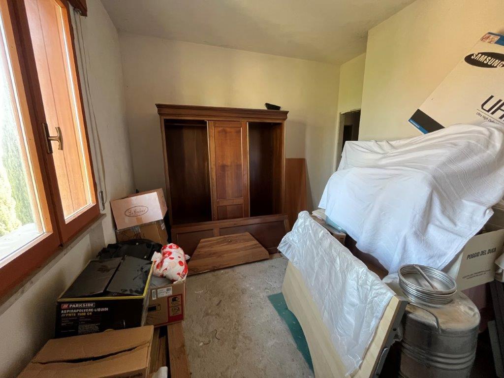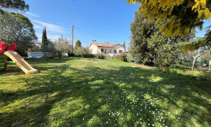 • The first floor, accessed via an external staircase, is partly composed of a renovated two-room apartment with a bedroom (with access to a shared balcony), kitchenette, and bathroom. On the same level, there are four rooms requiring finishing that could be converted into a dining room with a kitchenette and direct access to a large terrace overlooking the rear garden, three bedrooms, one with an ensuite bathroom, and a second bathroom.