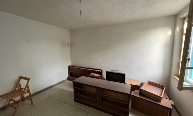 - The property is accessed from the main entrance on the ground floor. An internal staircase leads directly to the first floor, which features a kitchen/living room, a bathroom with window, and a double bedroom.