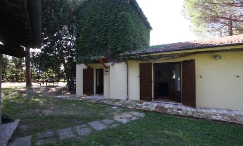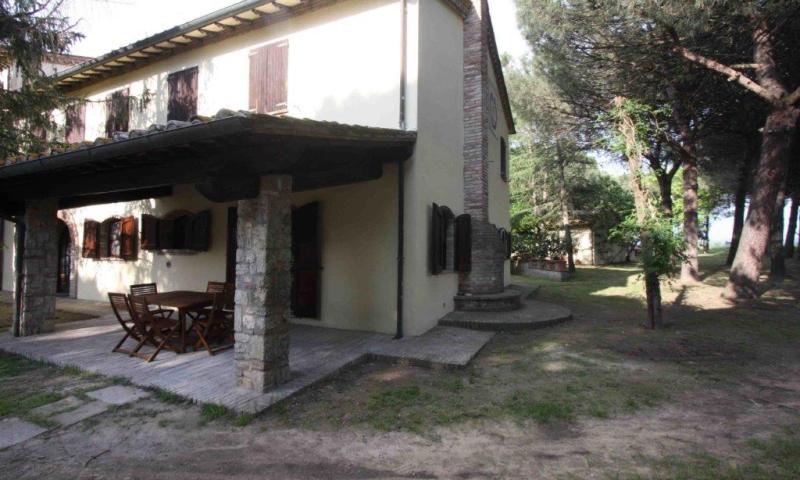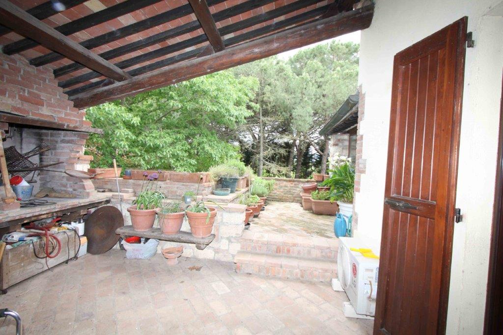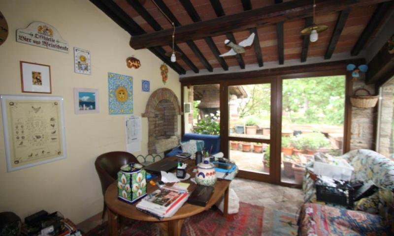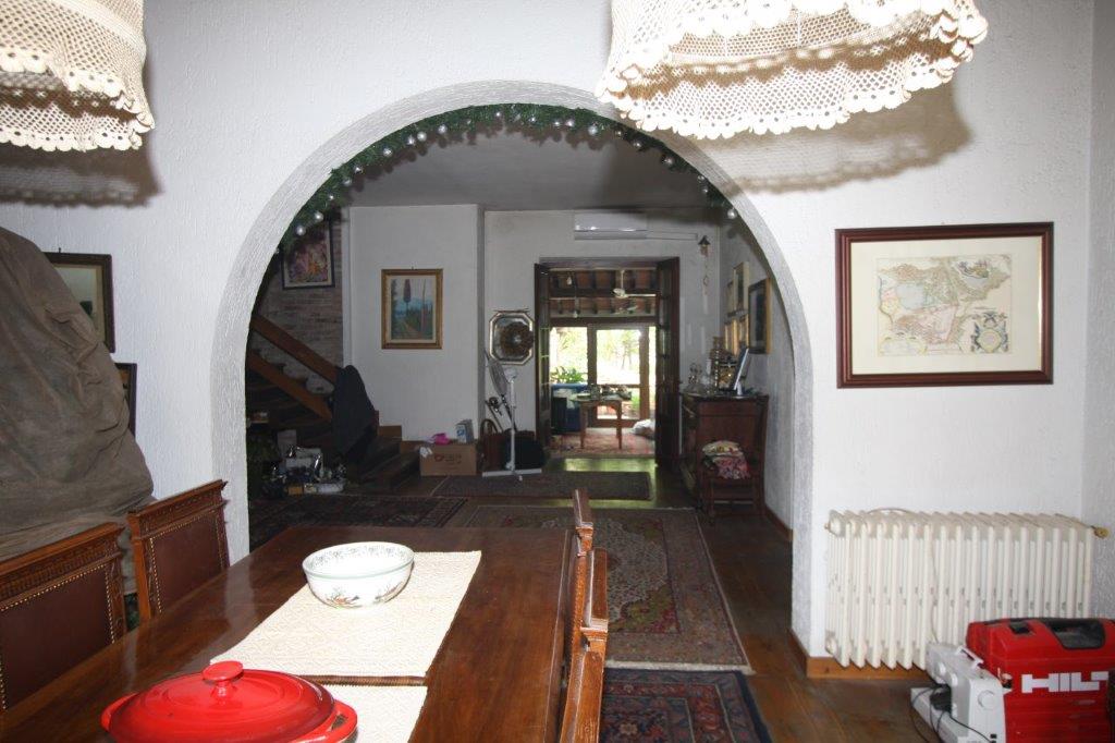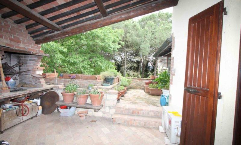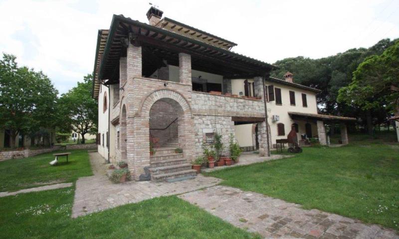 In posizione pianeggiante, a meno di dieci minuti da Castiglione del Lago e le bellezze del Lago Trasimeno, magnifico complesso immobiliare con terreno, giardino e annessi.