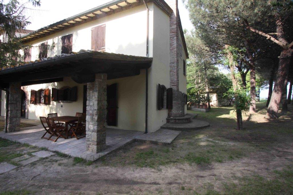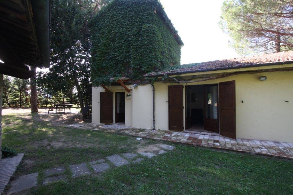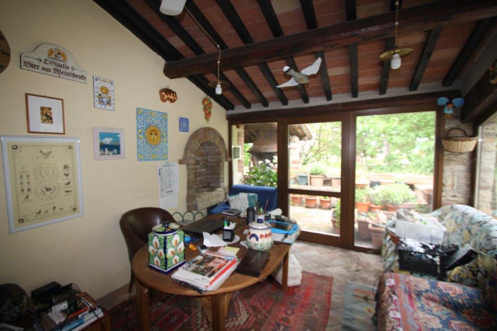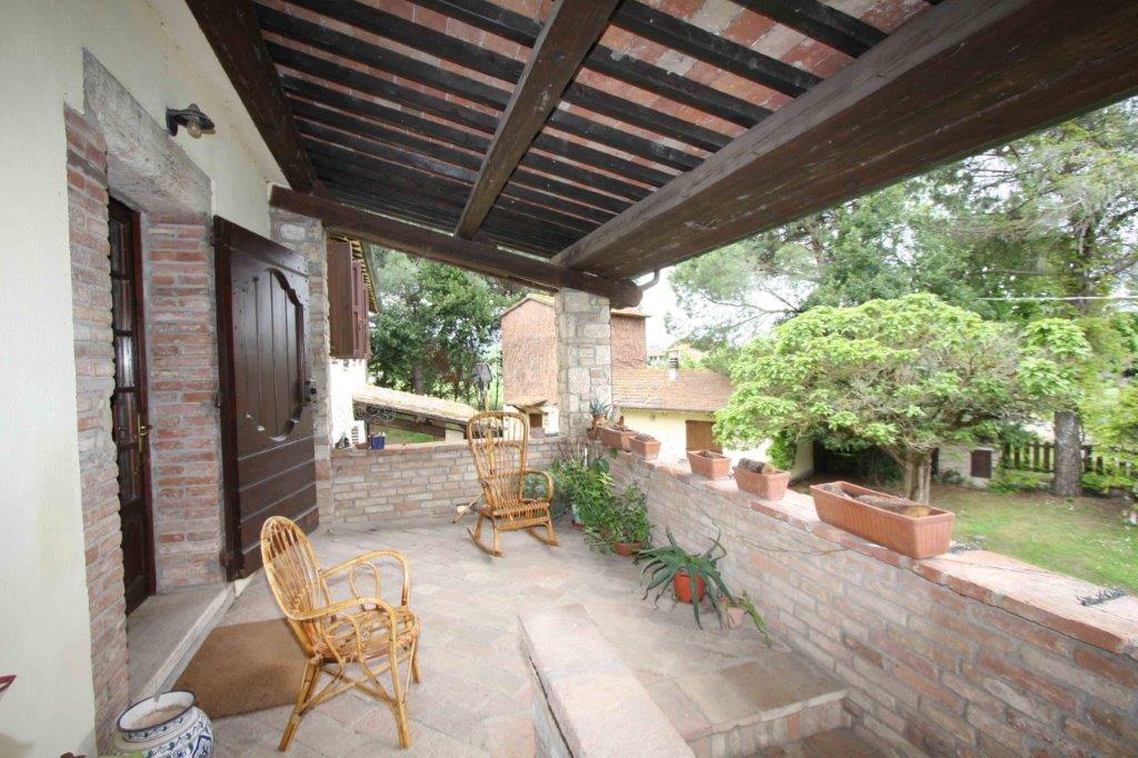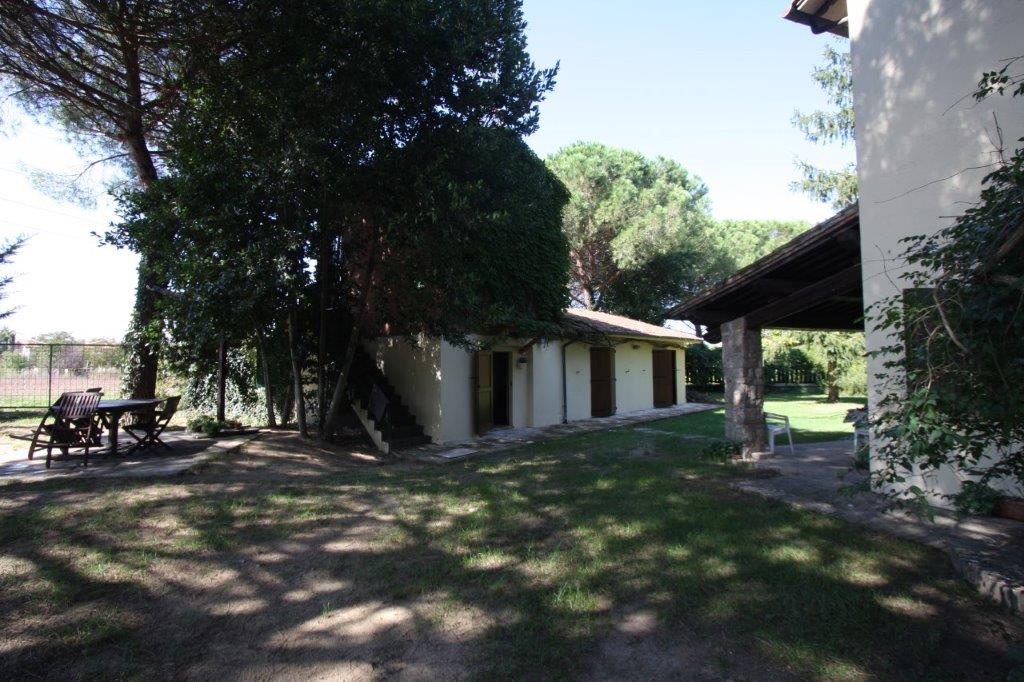 In posizione pianeggiante, a meno di dieci minuti da Castiglione del Lago e le bellezze del Lago Trasimeno, magnifico complesso immobiliare con terreno, giardino e annessi.