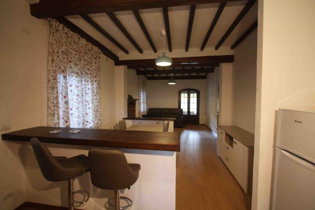 - Al piano terra del casolare principale si sviluppano due appartamenti indipendenti: il primo composto da salotto open space con forno a legna, cucina a vista con penisola, due ampie camere da letto e un bagno. Il secondo composto da salone, cucina, camera, bagno, ampia taverna con camino e zona magazzino.