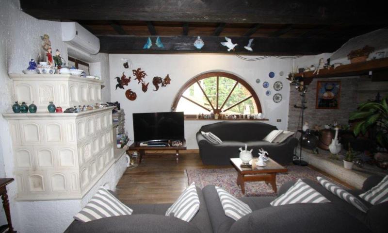 - L'appartamento principale si sviluppa al primo piano e secondo, raggiungibile da scala esterna che porta a un'ampia loggia, ed è composto da: ingresso, ampio salotto con grande focolare e stufa La Thun di ceramica in muratura, cucina abitabile con stufa, dalla quale si accede a un'ampia terrazza con forno a legna, e sala da pranzo. Sul piano leggermente rialzato troviamo una seconda sala da pranzo, un accesso a terrazza vetrata e la zona notte composta da due camere matrimoniali, cameretta con soppalco, due bagni, lavanderia e ripostiglio.