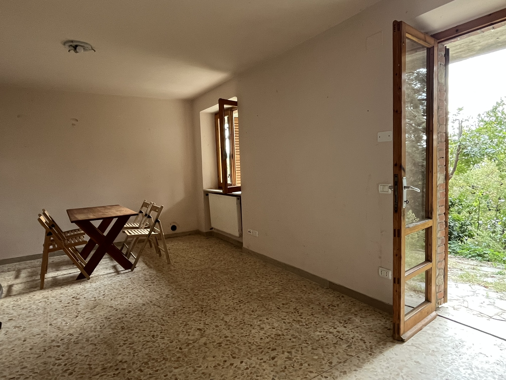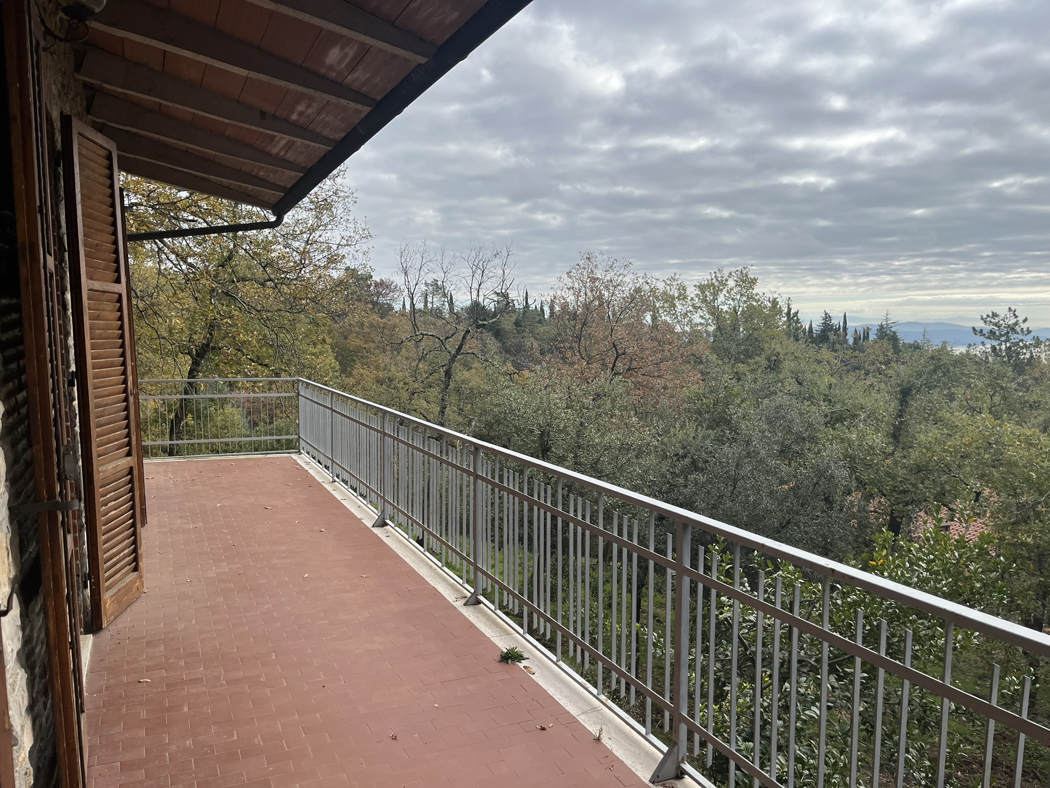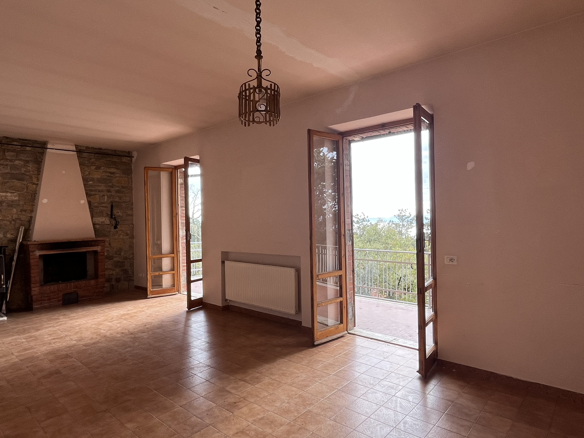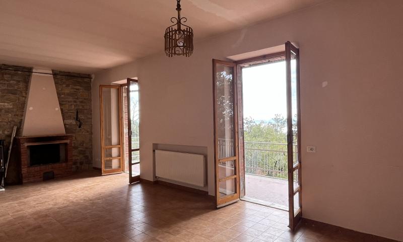 • al piano primo, raggiungibile da scala esterna che conduce alla loggia, ampio soggiorno con camino e accesso a una terrazza panoramica con una meravigliosa vista sul Lago Trasimeno, cucina abitabile, due camere, un bagno e ripostiglio.