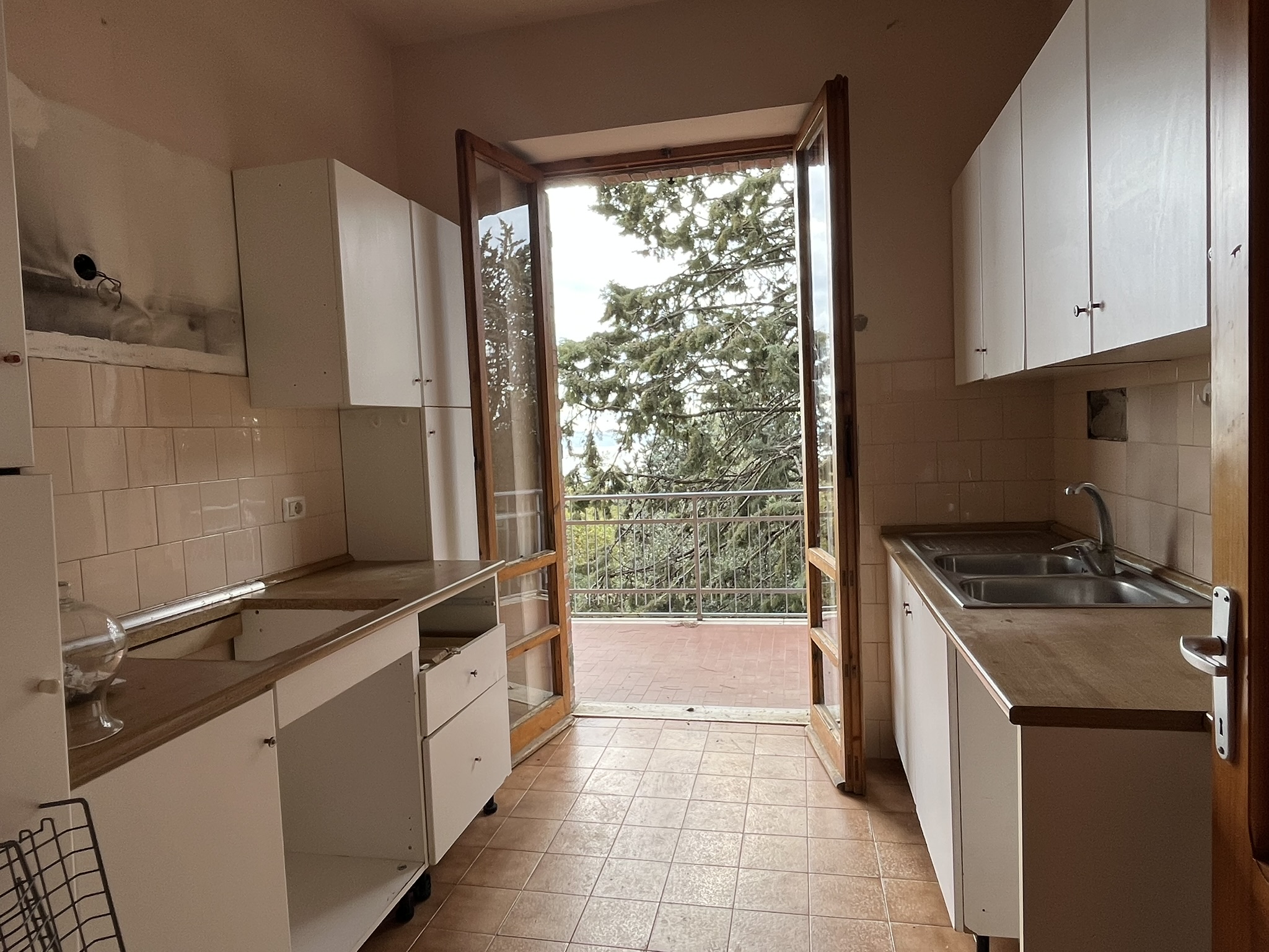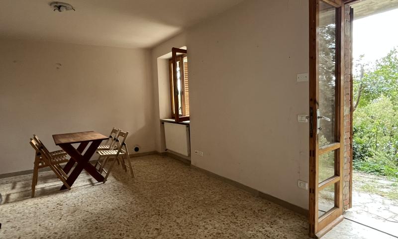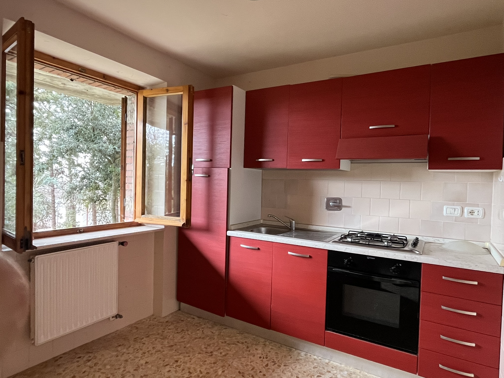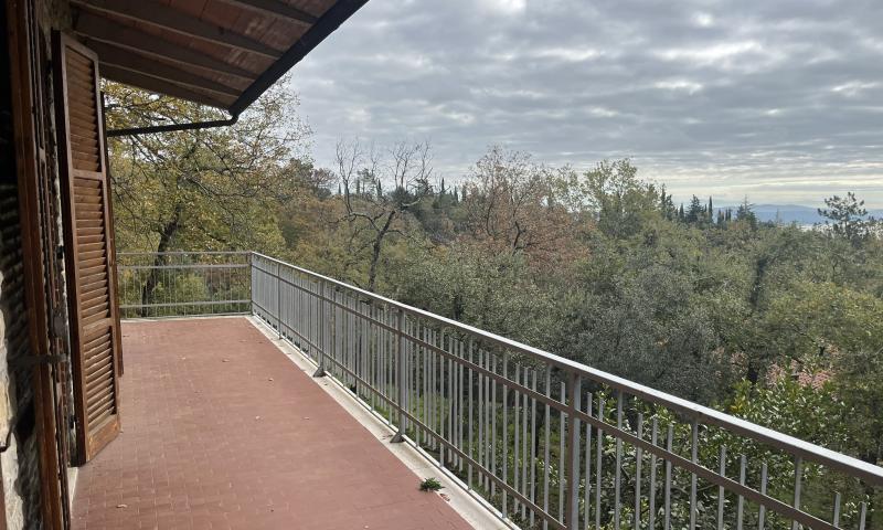 • al piano primo, raggiungibile da scala esterna che conduce alla loggia, ampio soggiorno con camino e accesso a una terrazza panoramica con una meravigliosa vista sul Lago Trasimeno, cucina abitabile, due camere, un bagno e ripostiglio.
